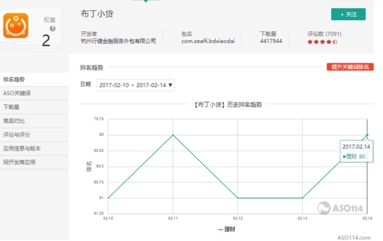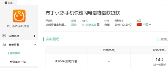 上线仅半年左右的布丁小贷,在苹果市场的财务类排行榜第140名,腾讯应用宝第80名。