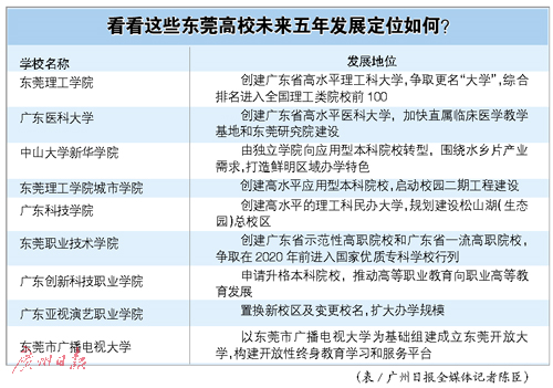 昨日,市教育局在官网上发布了《东莞市高等教育发展“十三五”规划》(以下简称《规划》),《规划》除了给东莞现有高校进行了发展定位外,还提出未来五年将新建2~3所高校。