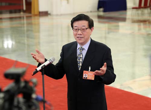 国务院发展研究中心主任李伟在12日的“两会部长通道”上表示,中国经济发展正从上半场的降速阶段,过渡到下半场的提质阶段,经济走势有望从“L”型的“一竖”过渡到“一横”。李伟说,目前积极有利的因素明显增多,经济增长大幅下滑的风险明显降低。但他也表示,“一横”走势,指的是中国经济中长期发展态势相对平稳,并不排除出现短期波动。图为李伟在接受采访。(来源:经济参考报 )