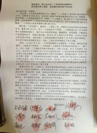 2016年4月28日曾报道《哈尔滨工业集团某些领导人涉嫌出卖国家资产,法应严惩!》,其为举报人不顾涉嫌违法违规分子的打击报复以及个人安危,毅然决然地举报出哈尔滨工业集团内部侵吞数亿国有资产的事件:哈尔滨工业集团前总经理毕明、现总经理张波等人涉嫌勾结、包庇社会不明身份人员宋国清,沆瀣一气,利用手中的权利,违反《国有资产评估管理办法》,先掏空国有资产,走形式低评、漏评,使数亿国有资产受损、流失,达到损公肥私的目的。