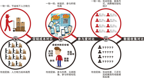 一物一码,顾名思义,就是赋予每个商品独一无二的二维码,承载着独特的信息。一物一码的出现,帮助传统快消品实现了真正意义上的“促销分离”。所谓促销分离,并不是指销售和促销完全割裂开来,而是指销售依然需要依靠传统线下渠道及电商、微商等多个平台进行,促销则单独拎一个系统出来做,这与传统意义上的促销相比,有着颠覆式的创新!