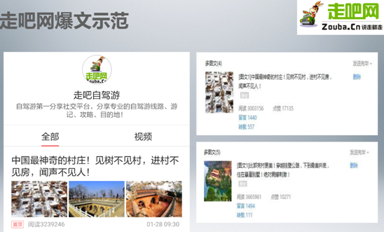 他讲到,截止目前,由微信和今日头条等组成的走吧网新媒体矩阵,阅读量累计有1000多万人次,连微信影响力全国冠军@人民日报、季军@人民网 都转载了走吧网这篇《中国最神奇的村庄!见树不见村,进村不见房,闻声不见人!》文章,加上557家转载、N家抄袭的阅读量评估至少超过2500万人知道了河南三门峡陕县的地坑院。