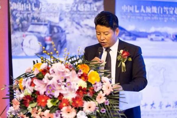 青海省玉树藏族自治州旅游局局长阿夏永红介绍中国七大顶级深度自驾穿越路线基本概况。