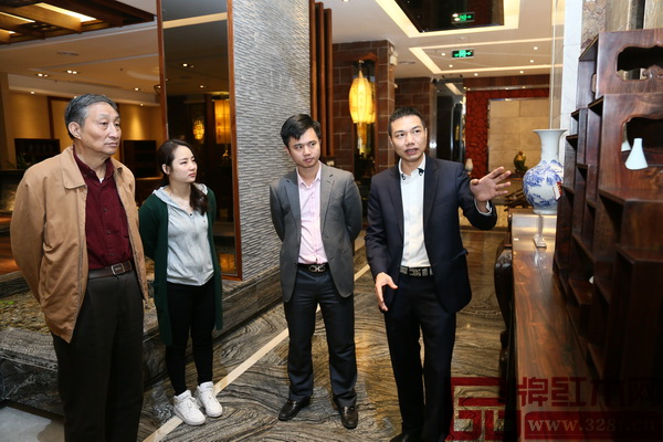 3月16日,刚刚参加完2017中山红博会系列活动的曹静楼老师第三次与鸿运堂结缘。曹老师在全联艺术红木家具专委会执行会长林伟华的陪同下,专程参观鸿运堂大红酸枝典藏馆,来探寻高端精品红木家具的源头。