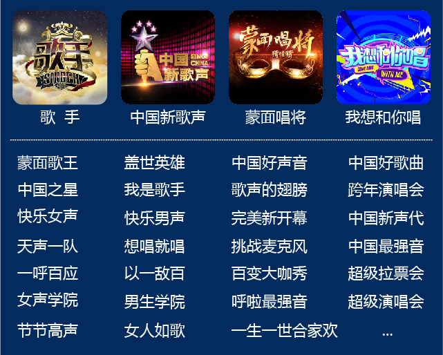 最受欢迎综艺节目:《我是歌手》、《蒙面唱将猜猜猜》、《中国新歌声》