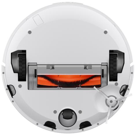 小米扫地机器人最前端接触垃圾的原件是左侧的边刷,它的边刷有两个独特设计,首先转速分为高速和低速,在延边清扫的时候边刷以330RPM高速运行,保证了边角垃圾的彻底扫出,在延边之后的之字形清扫的时候,边刷以150RPM低速运行避免了大块垃圾被击飞的情况。而且它的边刷不是平行地面的,而是沿着一个精确角度向着风口倾斜的,这样能够非常协调的完成垃圾的传送工作,更利于垃圾吸进尘盒。