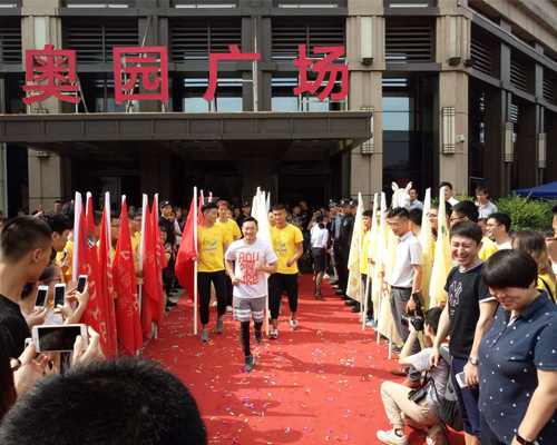 6月18日,成都各大商圈和街头一群足球宝贝快闪,掀起了一股“奥园来了,杨威与您迎奥运”的旋风。6月19日上午,仅用了10余天的时间,成华奥园广场品牌馆全新开放。两届奥运冠军、湖南卫视《爸爸去哪儿》明星嘉宾杨威一早9:00亲临奥园品牌馆现场,与广大市民热情互动和送上父亲节的祝福,并签名奥园“奥林匹克长跑”旗帜,与运动选手们一起迎跑奥运。