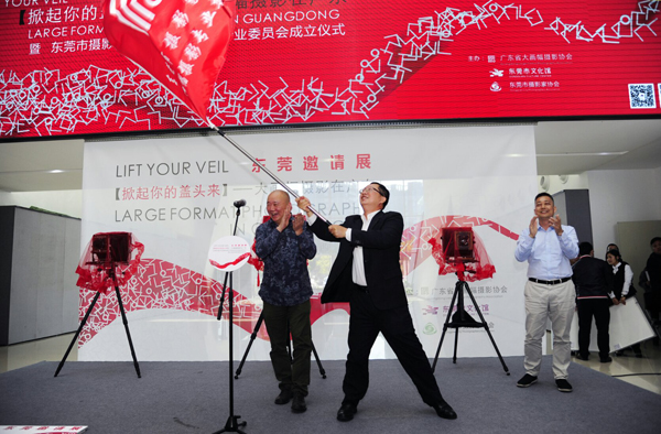 活动中,随着盖在三台大画幅的红盖巾被掀起,“掀起你的盖头来”——大画幅摄影在广东(东莞邀请展)宣告正式揭幕。