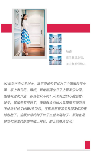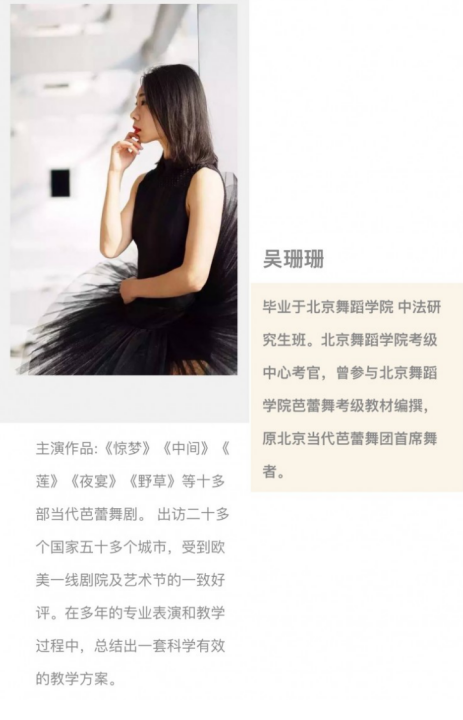 “ 曾经,我是一名活跃在艺术舞台上的首席舞者,现在,希望通过「美若舞蹈」这个平台让舞蹈教育变得更专业更普及。从专业的师资力量、专业的课程体系、专业的授课方法、专业的硬件设计等全方位打造,将舞蹈艺术变成一门艺术语言、一种交流方式,让每个学员都能享受身体、自由舞蹈。“
