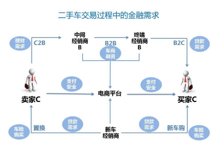 当然,中美市场并不能一概而论。而从中国二手车市场的实际流转链条来看,卖者和买者这两个C之间,存在4S店和车商任意一个、或两者并存的交易链条,这种模式占据了交易量的80%以上,而C2C模式仅有不到20%的份额。