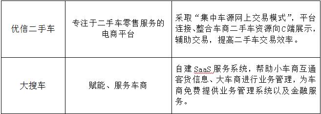 优信二手车和大搜车的二手车零售领域布局,尽管都以服务车商为主,但模式也不尽相同: