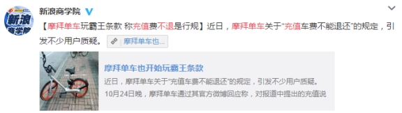 不过,据大量摩拜用户反映,充值款被吞的情况屡见不鲜,甚至有专家指责摩拜充值协议无异于霸王条款。有网友抱怨:“客服打不通,余额不能退,你们这就是强买强卖强盗行为好吗!我往里面冲了100块钱,要骑到哪辈子能花完啊!”造成充值款难退的另一个原因,是摩拜广受诟病“不智能”的余额核算系统。摩拜官方曾表示,由于余额的计算审核工作太过繁琐,系统难以直接统计充值和消费额,鼓励用户本人手动核算。