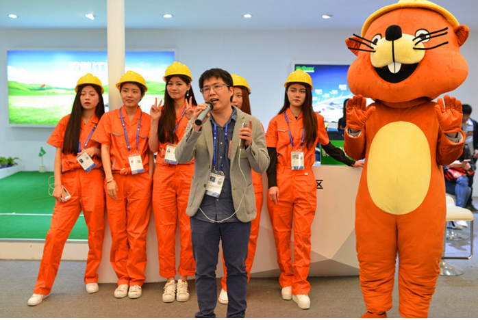 现场小筑理的网红身穿建筑工地工服,直播现场展会热况,还有模特进行走秀巡场,小筑理公仔也会跟随模特巡场走秀,真是亮点十足、风头无两。