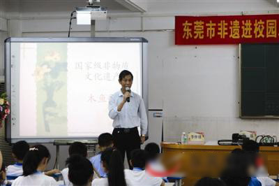 讲座上,孩子们则听得很入神,有几次李仲球老人讲到木鱼歌的演唱技巧时,情不自禁地示范了起来,他那抑扬顿挫又充满乡土气息的歌声,个别学生也忍不住跟着哼起来,但又学得不像,引得哄堂大笑。(来源:东莞时报)