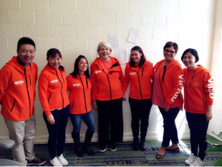 (VIPKID创始人米雯娟、陈媛、张月佳在美国庆祝北美外教突破1万、学员突破10万)