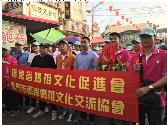 2017年3月24日晚间,厦门市两岸妈祖文化交流协会受邀参加台湾大甲镇澜宫妈祖九天八夜绕境活动,以协会会长蔡马勇先生为首和其他几百名信众一同前往台湾参加此盛会!盛会还邀请到在两岸有着影响力的台湾“现象级”音乐组合玖壹壹参加协会绕境队伍中来,并共同参拜妈祖。用音乐,用激情,用同心,用动律来展现两岸年轻人对妈祖的崇敬之心,对中华民族精粹的热爱,目的是号召两岸更多青年一代加入中华文化传承中来。”