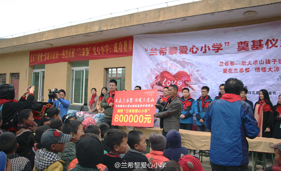 2017年3月30日,“爱在兰希黎,情暖大凉山”为主题的兰希黎爱心小学奠基仪式圆满完成。兰希黎向索玛慈善基金会捐赠80万元善款用于建校,这是兰希黎捐建的第一所爱心小学,这所爱心小学,将为大凉山的贫困学子追求梦想之路,献出一份力量。
