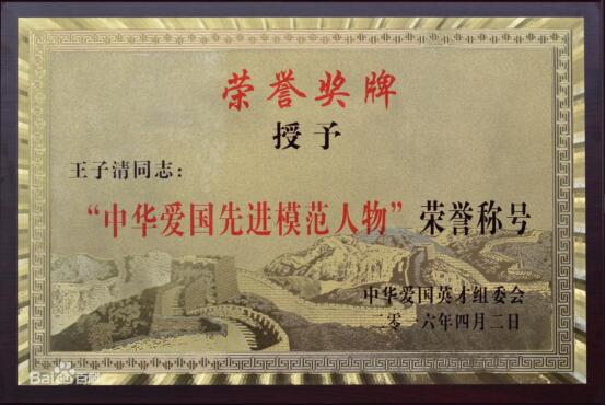 2016年4月2日(王子清)被中华爱国英才组委会授予:|中华爱国先进模范人物。