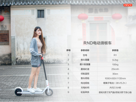 RND智能电动滑板车30KM续航,解决电动滑板车动力问题,满足大多数人城市短距离出行需求;