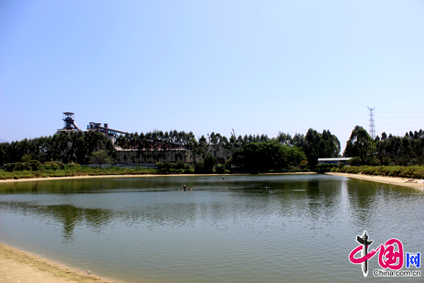 图为大埔围村的景观湖,曾经清澈的湖水泛黄。