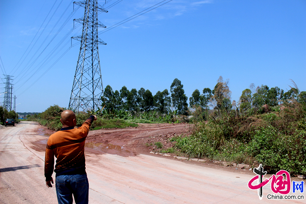 图为村民指向有毒垃圾处理场地。