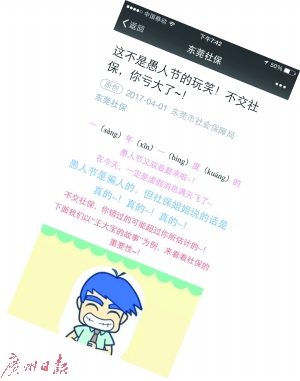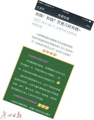 今年以来,“东莞社保”政务微信公众号以“社保姐姐”的名义推送了《办理社保转移最快仅需30秒,结果可自助查询更方便!》《有社保疑问吗?这里都能找到答案!》《社保定点医院难辨真假,社保姐姐帮你带路》《社保发卡银行能改吗?》《扣钱!扣钱?究竟几时扣钱!》《这不是愚人节的玩笑!不交社保,你亏大了!》等系列文章,以轻语言和小图片回应社保热点,获得广泛传播,平均阅读量超过了“10万+”。