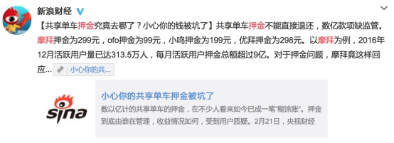 共享单车变共享押金?网传摩拜或挪用押金用于扩张
