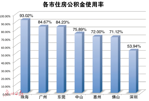 通过对比珠三角部分楼市比较火热的城市的住房公积金年度报告,记者发现,去年,东莞住房公积金使用率在上述7个城市中排名第三。