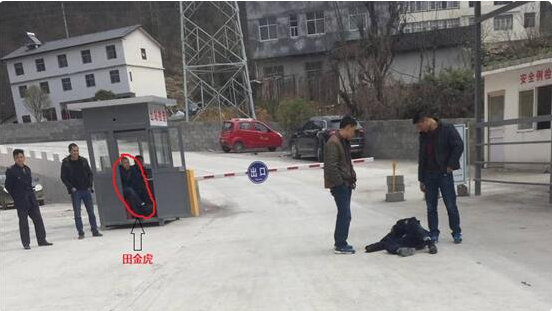 (图为打人的黑恶势力和田金虎,被打的举报者躺在地上)