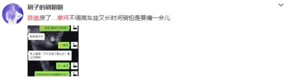 众所周知,摩拜为了节省维护成本,车身采用了实心胎,好处是避免爆胎与频繁充气。加上摩拜踏板滑、脚撑易脱落,如果遇上刹车系统的间歇性失灵,发生交通意外的几率大增。网曝广东中大女生骑摩拜被摔伤,就是因为刹车系统失灵造成的。摩拜单车坐垫太低,高度无法自由调节,导致用户骑行时双腿蜷曲成闭合状,一定程度上加重了劳累与伤痛。据了解,造成摩拜单车加重膝盖损伤的原因有二:一是大多数用户并不是专业运动人士,在面对摩拜单车这种笨重单车时,往往并不知道采取专业的骑行姿势;二是摩拜车座不能调节高低,过高或过低都会加速损伤半月板。