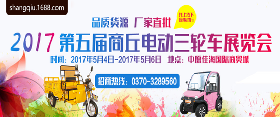 “高端电动三轮、看商丘”,2017年第五届商丘电动车展览会将于5月4日—6日,在商丘市中原佳海国际商贸城(商丘市310国道与商均路交会处)盛大举行。