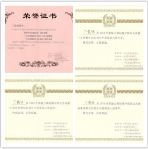 2010年世界脑力锦标赛中国区总决赛一小时扑克牌记忆项目中获得成人组冠军