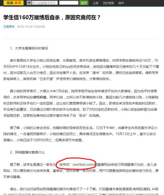 这是怎么回事?这个所谓的WellBET吉祥 坊又是一家怎样的商家呢?经过记者们的一番暗访探查,这个所谓的“WellBET”居然是早在16年10月份就曾经因为构陷网友沉迷网络赌博,导致其自杀而被查处的“吉×坊”!这种污点不法网站怎么会有资格赞助意甲联赛这种大型赛事?又为何只出现在国内的网站?在国外却踪迹全无?