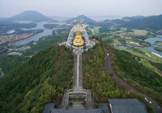 然后,穿过大雄宝殿的喷水池,再上去就是四面观音,需沿着108级无量云梯,向着山顶攀爬。一步一景,好像真的“除尽烦恼”,步步生莲。