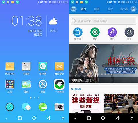 海信双屏手机A2中“遥控器”APP在首页集成了视频功能,还可以链接到电视投影,我们还是看看遥控器的功能吧。