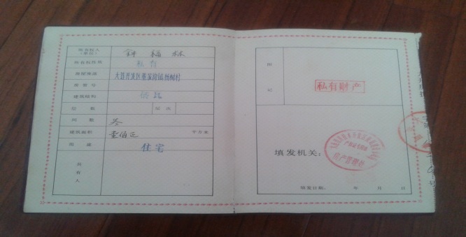 当事人之一钟福林,是一名中学教师,家住大连市金州新区董家沟街道杨树村。是此处房屋的看护人,这栋洋房主人是他叔叔钟林杰。(原国民党老兵 现定居台湾) 1992年钟福林定居于美国的二叔和定居于台湾的小叔联名向当时的董家沟镇政府递呈了一封申请函,函中明确表示:作为海外华侨思乡心切,想在故土(也就是杨树村)建设一处房屋,以备回国养老之需。后获准并批复360㎡土地作为宅基地使用。