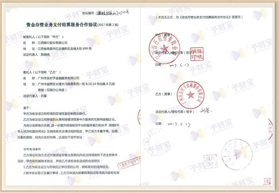 继去年10月接入中信银行资金结算系统后,日前,予财宝银行资金存管再升级,与江西银行完成资金存管签约手续,接下来将做技术系统的对接。予财宝正集中所有IT技术力量抓紧江西银行存管系统的开发、技术测试、用户测试和数据迁移测试等上线前准备工作。与江西银行对接的这套资金存管系统预计很快就会与投资人见面。