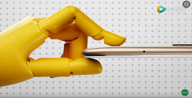 通过曝光的视频,用户可以感受到强烈的科技范与简约时尚的氛围。视频主色调采用了当下最流行的糖果色系风格,三种不同颜色的机械手分别控制着三款R11,从不同角度向年轻用户展示R11的外观造型。