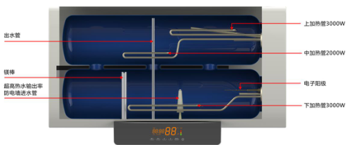 为何家中的热水器加热总是慢半拍?那是因为传统热水器通常采用单胆多加热管,水始终在一个空间内,上半胆水刚刚加热,进水口水冲上去,和热水混合,热效率大大降低,加热自然慢半拍。