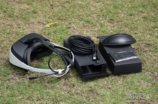 (二)内部配件:箱内包含主机、两个配件盒,一个盒子装有主机一体数据线,另一个则是头戴部分的可拆卸海绵垫和擦镜布。主机下面有产品说明书和保修单。如果前期参加京东众筹活动的朋友还可以获得游戏手柄和耳机,还可以参加优惠换购活动,还是非常超值的哦!