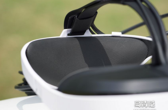 (三)主机部分:E3整体设计非常轻巧,黑白相间的颜色搭配很大气。头盔重 297克左右,佩戴时很轻,很舒适 。大朋的LOGO启动时会为蓝光色,颜控的最爱,有质感。外观上整体采用了流线型设计,一方面是为了美观,另一方面是为了防止磨损。通过观察大朋E3细节部分,工艺还是不错的,比上一代产品E2有了明显的提高,相对国内良莠不齐的部分VR产品,也有了质的提高。头盔顶部的两条线,一条是一体式的HDMI视频线和USB数据线,另一条则是音频线,需要自行购买耳塞或耳机插入3.5MM接口。