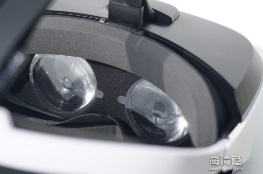 海绵垫到镜片距离较大,中间容纳空间也较大,估计是为了近视眼玩家设计,可以放进去眼镜或者嵌套镜片。本人近视200到300度 ,正常使用没问题,只是略微模糊,加了用在CV1上面的专用近视镜架镜片,显示效果有了较大提升。镜片周边是有弹性的布料设计,这个是个非常值得称赞的设计,一方面是为了减轻重量,另一个是为了透气,不让镜片那么容易起雾。