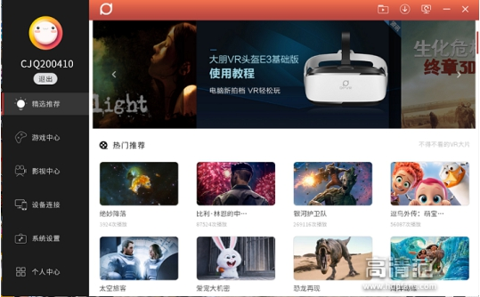 另一个软件是VRONLINE,中文名称是VR助手,这个软件适配绝大多数主流虚拟现实头盔,整合了市面上大量游戏资源和电影资源,内容上很丰富。我打开游戏,还有让人脸红心跳的VR女友游戏,还有一些激烈的射击游戏,基本上你想要的都有了。