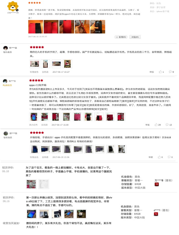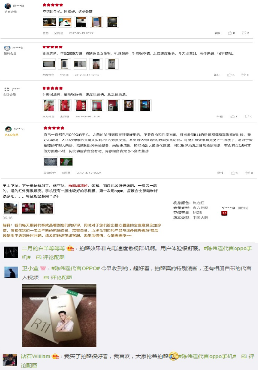 下面小编截取了各大购物平台的评价,让我们看一看用户对OPPO R11的哪些方面赞赏有加。