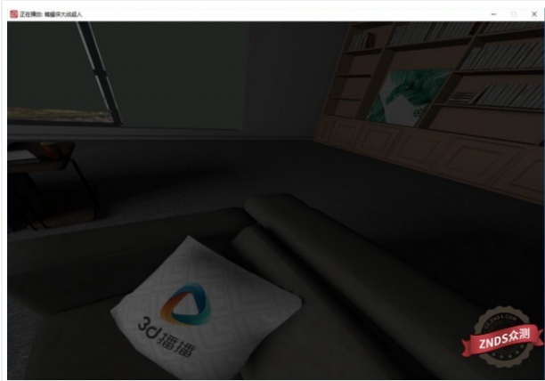 现在各种VR产品都会强调沉浸感的表现,大朋助手的影视播放主界面场景模拟了书房和客厅的环境,全景视觉给人强烈的沉浸感,美中不足的是,这个场景设计还是简陋了些,就沙发、书架而已,如果能增加点植物、挂图,感觉会更真实一些。