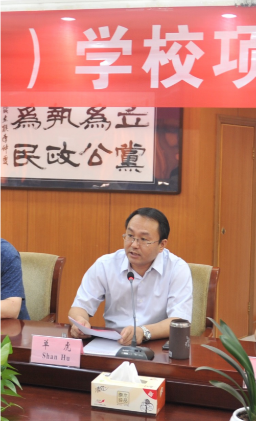 瑶海区区委副书记、区长单虎首先代表瑶海区致欢迎辞,他表达了对卡迪夫公学合肥学校项目的期待。他指出,卡迪夫公学承办过中英人文交流论坛,学生大使曾受到习近平总书记和刘延东副总理的接见和赞扬,是中英文化交流的典范。合肥是全国的科研教育基地,瑶海作为合肥的主城区之一,在教育领域始终秉承创新发展的理念,获得过多项国家级教育奖项,是安徽的教育强区。相信在“资源共享、合作共赢”原则的指引下,通过努力双方一定能够实现优势互补、密切合作、互利共赢、共同发展,为城市的转型发展、科学发展提供更加有力的人才支撑。