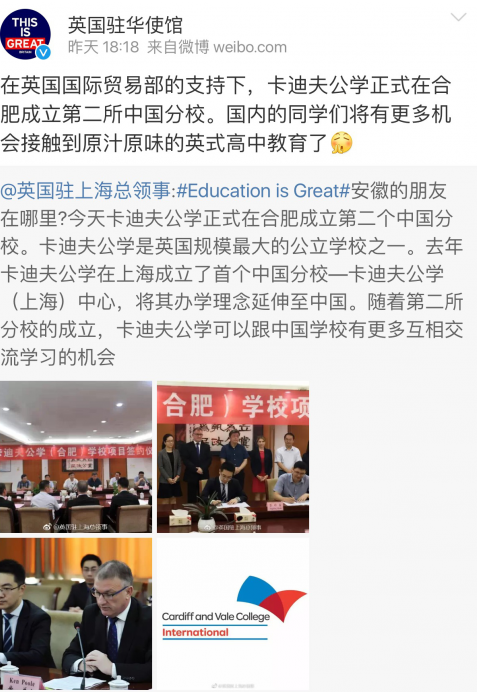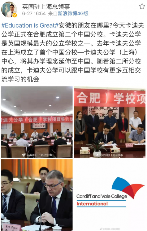 英国方面非常重视此次合作,英国驻上海总领事John Edwards下午特地在微博上发布了这一消息,随后英国驻华使馆官方微博转发了该信息,并指出此举将为更多中国学生带来接受英式教育的机会。