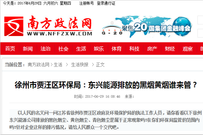 徐州市贾汪区环保局:东兴能源排放的黑烟黄烟谁来管?