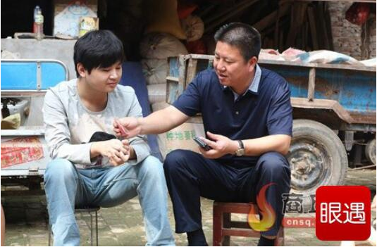 孙红军(右)为贫困大学生送去慰问金