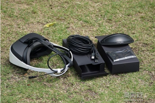 (二)内部配件:箱内包含主机、两个配件盒,一个盒子装有主机一体数据线,另一个则是头戴部分的可拆卸海绵垫和擦镜布。主机下面有产品说明书和保修单。如果前期参加京东众筹活动的朋友还可以获得游戏手柄和耳机,还可以参加优惠换购活动,还是非常超值的哦!